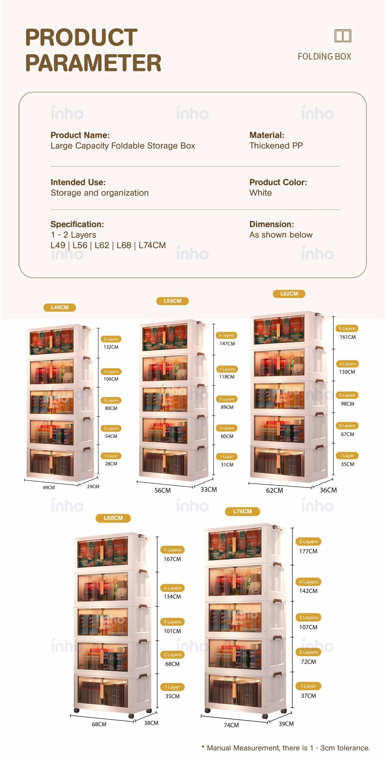 2 Layers: L49 x W29 x H54cm (With Pulley)