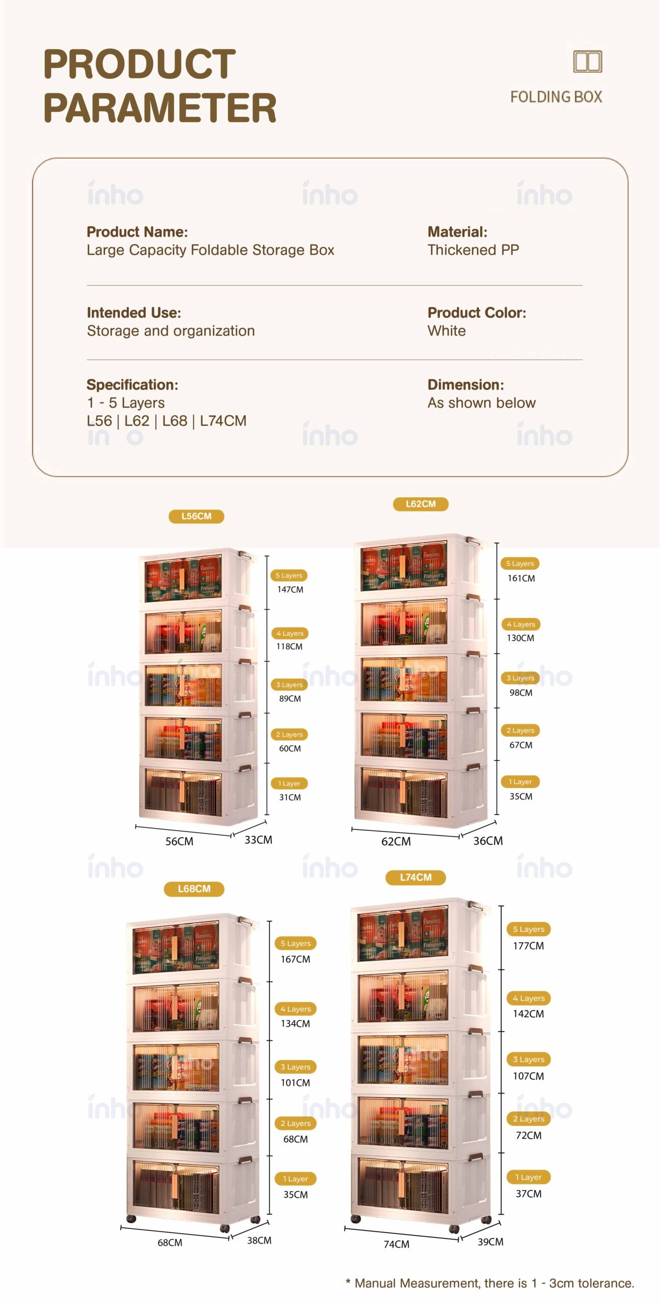 2 Layers: L56 x W33 x H60cm (With Pulley)