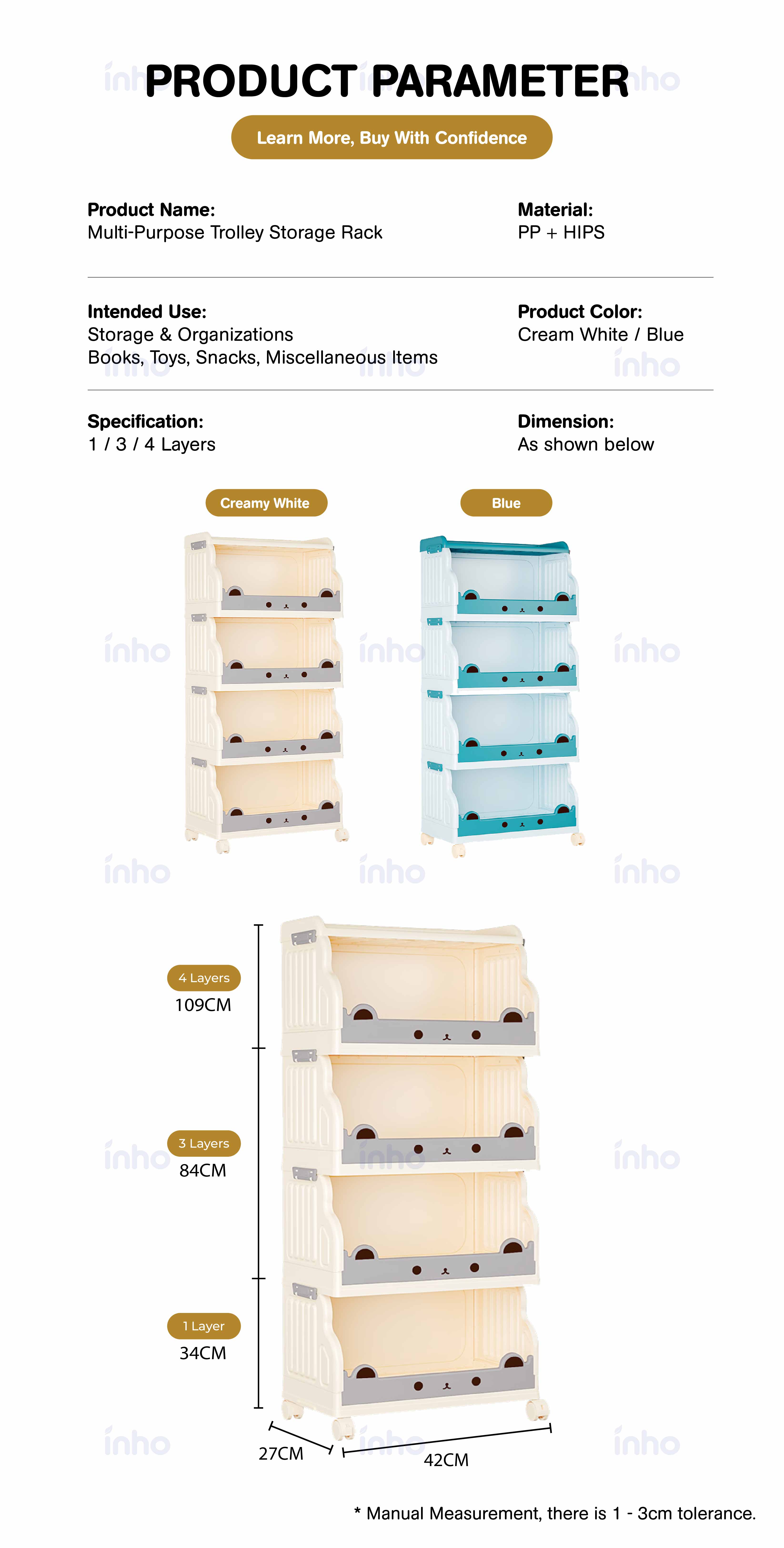 – Measurement Tolerance: Please allow a 1-3 cm difference due to manual measurement.