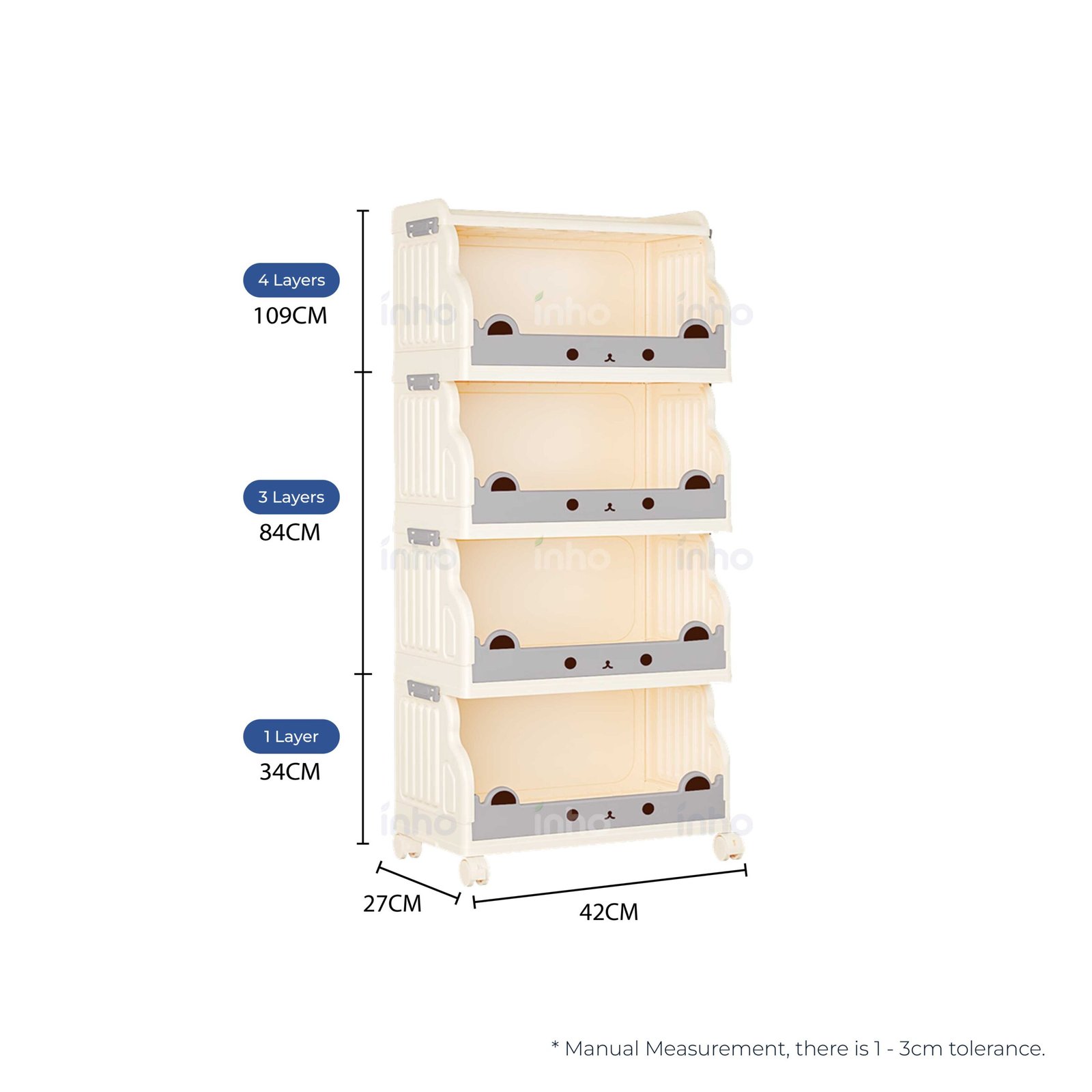 – Layered Design – Neat and organized storage with multiple tiers.